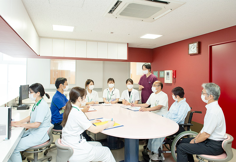 回復期リハビリテーション病棟は、急性期治療を終えた患者さまが身体機能の回復を図る時期に、ADLの改善や、失われた機能の再獲得を目指し、チームで関わりながらリハビリをする病棟です。病棟生活自体もリハビリとなるため、常に在宅復帰を見据えたケア提供し環境を整備します。患者さまとご家族さまにじっくり時間をかけて寄り添い、不安や悩みの軽減に努め入院生活をサポートします。