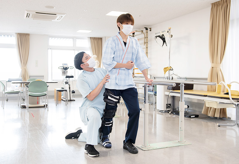 竹重病院のリハビリテーション科では、「失われた機能の回復」と「その人らしい生活の実現」を目標に、患者様1人ひとりに合わせた専門的なリハビリテーションを提供しています。外来通院でのリハビリテーションだけではなく、集中的なリハビリテーションが必要な方のために専門病棟(回復期リハビリテーション病棟、地域包括ケア病棟)での入院リハビリテーションなど、患者様の状態や生活環境に応じて対応します。