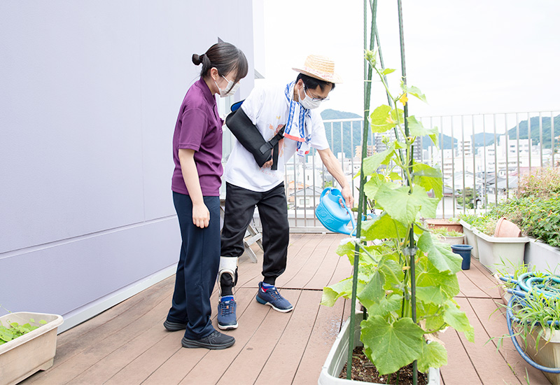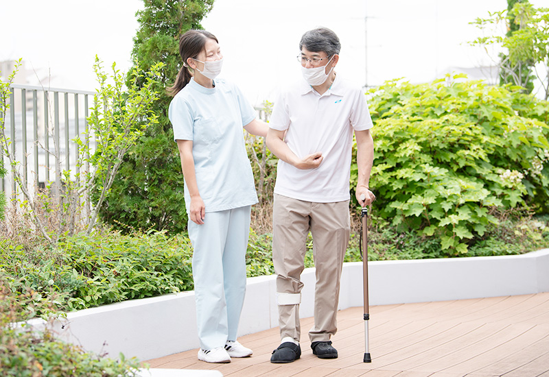 また、自力で生活動作を行うことが難しい患者さまに対しても、チームの各専門スタッフが協力して働きかけ、機能の維持・向上を図るとともに、ご家族や介護を担う方の負担軽減に取り組んでいます。