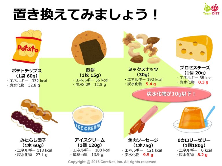 ③炭水化物が少ないおやつに置き換えるのも一つです。
