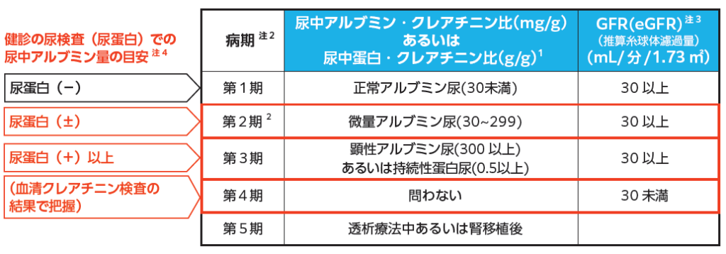 糖尿病があり、尿中アルブミン尿が出始めている方は、腎機能低下速度を緩めることが証明されているため、腎症悪化の予防の観点からも早期SGLT-2阻害薬を導入することがお勧めですが、副作用もあるので、メリット、デメリットについて相談して導入することになります。