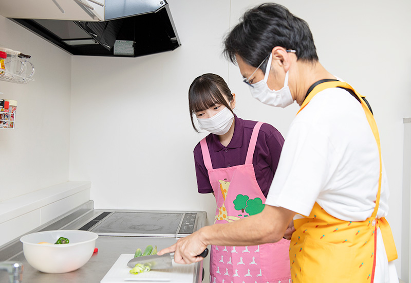 個人の生活スタイルに合わせて家事の訓練や復職に向けた訓練、畳の上での動作や屋外活動の訓練なども行います。