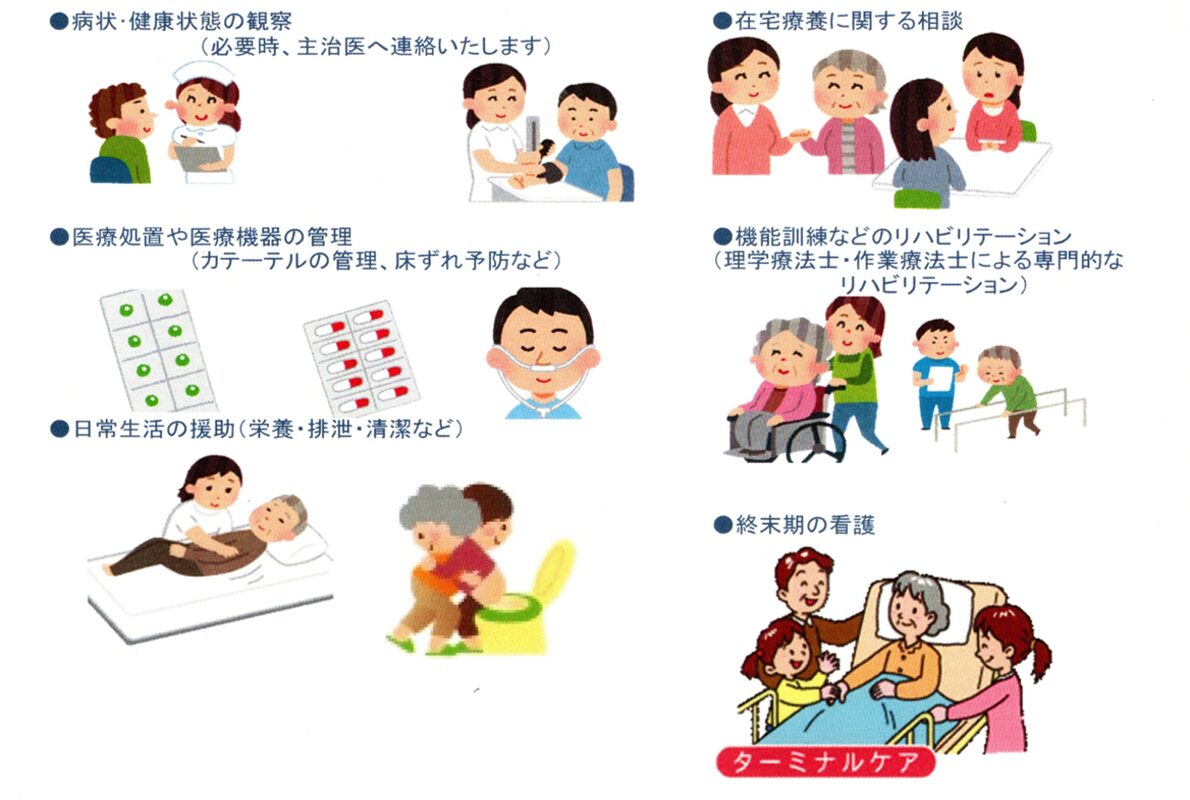療養生活や介護でお困りの際には、訪問看護師がご自宅に伺い、日々の生活をサポートいたします。